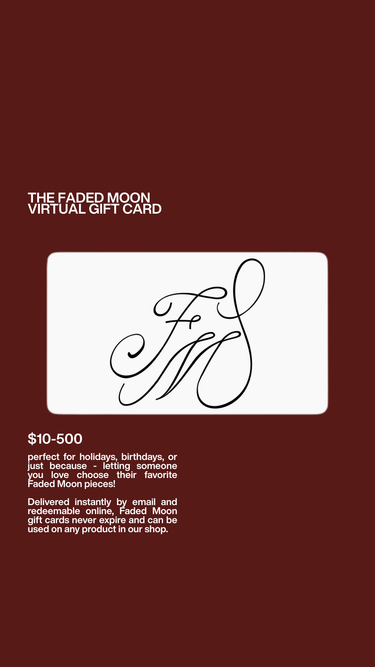 Our digital gift cards are perfect for birthdays, holidays, or just because - letting someone you love choose their favorite Faded Moon pieces!